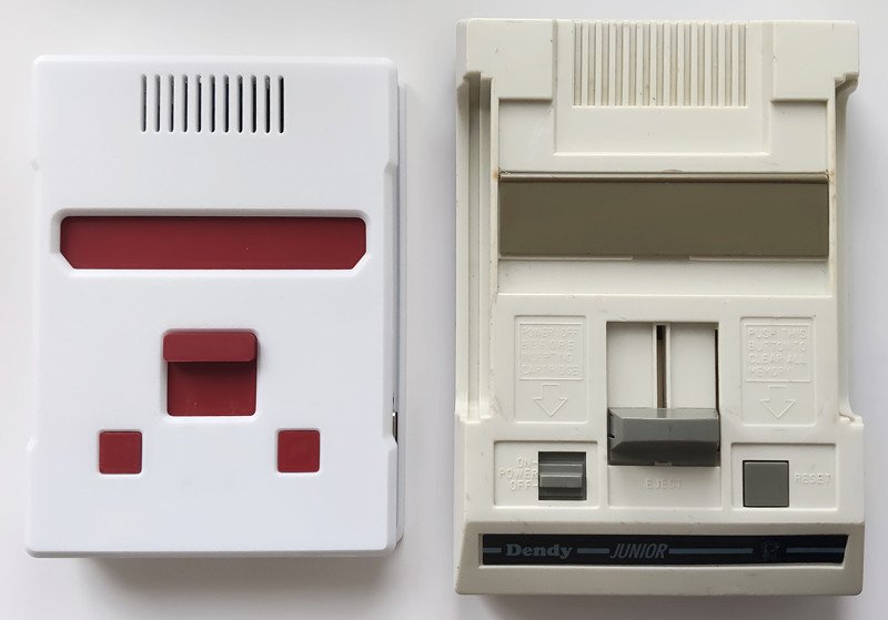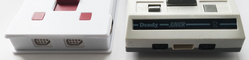 Приставка немного компактнее, чем Dendy Junior, как по высоте, так и по длине.