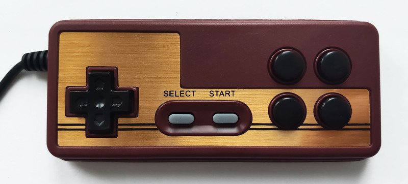 Джойстики внешне выполнены в стиле классического геймпада Famicom.