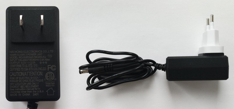 Блок питания на 9 Вольт, полярность правильная, внутри плюс, снаружи земля. Блок питания не совместим с Dendy, где полярность была перепутанная. Размер провода составляет 1.5 метра. Переходник не сползает, держится уверено.
