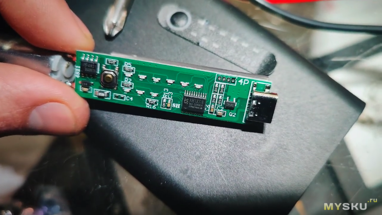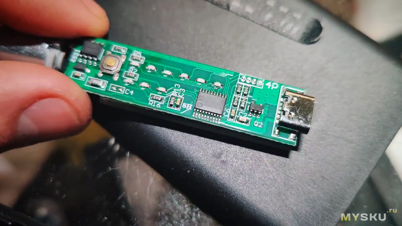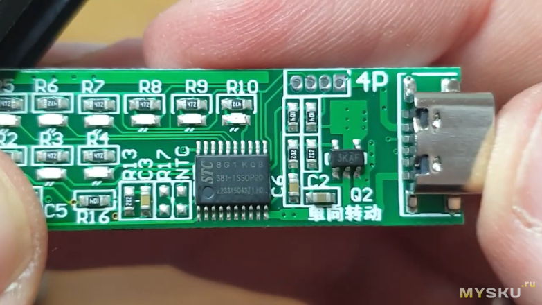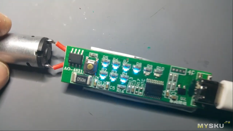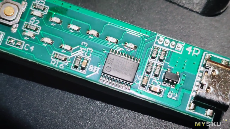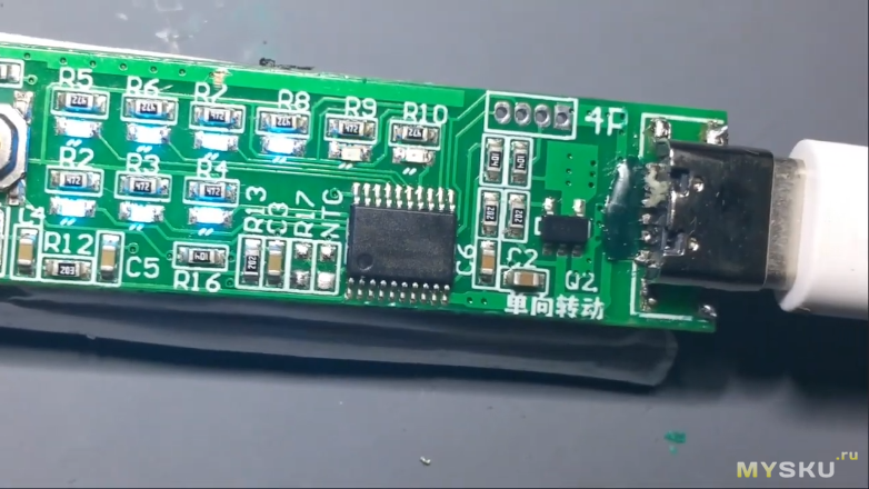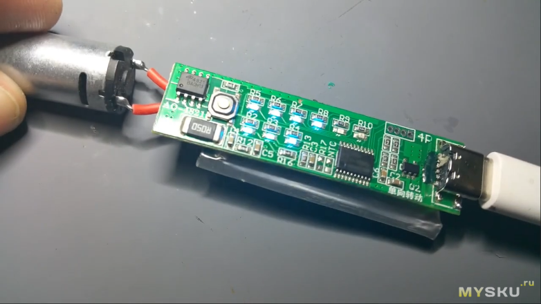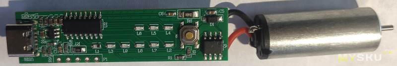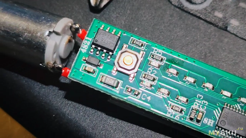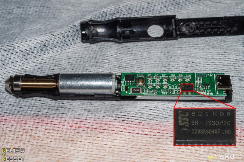 Затем с кончика довольно туго стягивается металлическое кольцо и можно располовинить. Вал на подшипнике, контроллер STC8G1K08 бодренький для таког опростого устройства, в али стоят по 100 рублей за штуку. Вал на подшипнике, биений во время работы нет. Двигатель коллекторный, так что для поддержки оборотов контроллер через шунт следит за нагрузкой и по мере её увеличения увеличивает выходную мощность(но это не точно)