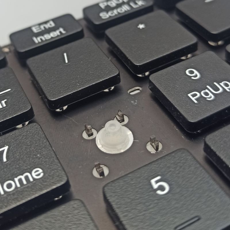 Механизм здесь как я уже писал выше, ножничного типа. Вот что представляет из себя снятая клавиша и её внутренний мир:
