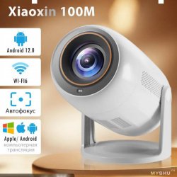 Данный проектор отличают весьма компактные размеры: 16x14x12 см, а также вес — всего 0,8 кг. Яркость достаточна для затемнённых комнат или вечернего просмотра — 230 CVIA. На борту Android 12 с 2/32GB памяти. Есть автофокус. Подставка с наклоном и фиксацией.
