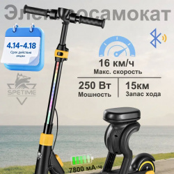 250 Вт, максимум 16 км/ч, запас хода 15 км