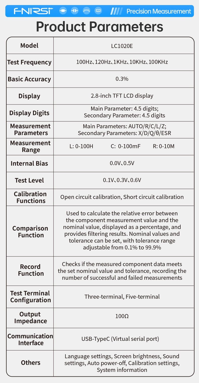 У FNIRSI новый измеритель. LC1020E — инструмент для тестирования электронных компонентов, щупы кельвина (четырехпроводная схема) и обычные. Цветной экран 2.8", работа от аккумулятора 3000 мАч, запись показаний.