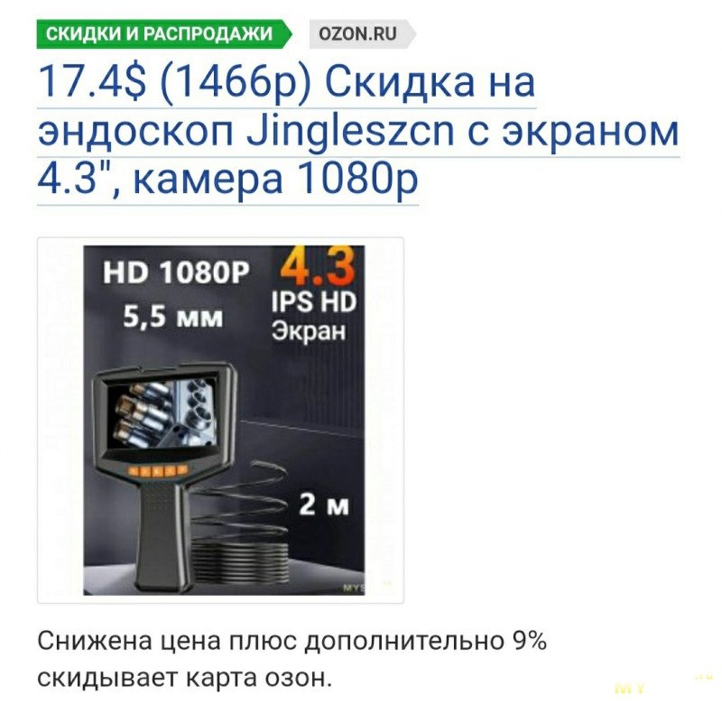 53.46$ (4736р) Скидка на эндоскоп Jingleszcn с экраном 4.3", поворотная камера 1080p