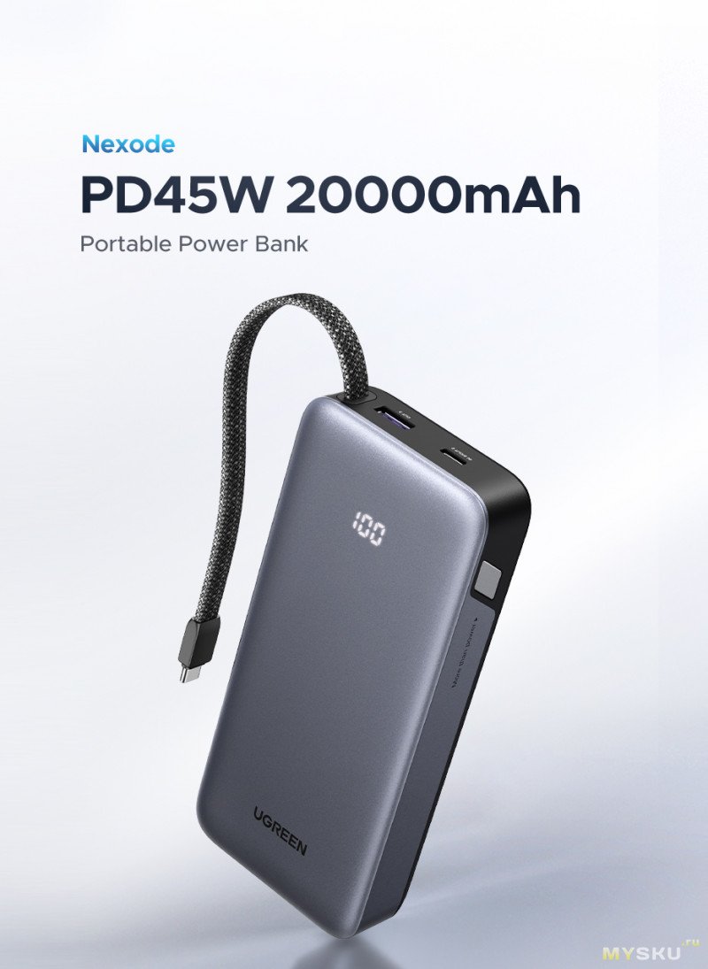 Пауэрбанк UGREEN Nexode 20000 мАч PD 45 Вт (Из РФ 2442 руб.)
