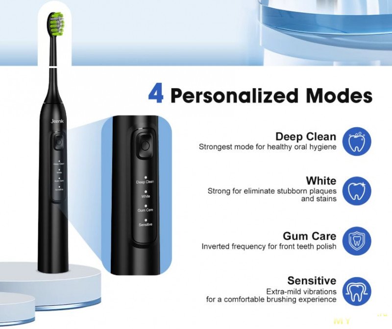 Повышенная производительность гораздо более мощная, чем обычные электрические зубные щетки, обеспечивающая роскошную чистку зубов по доступной цене.