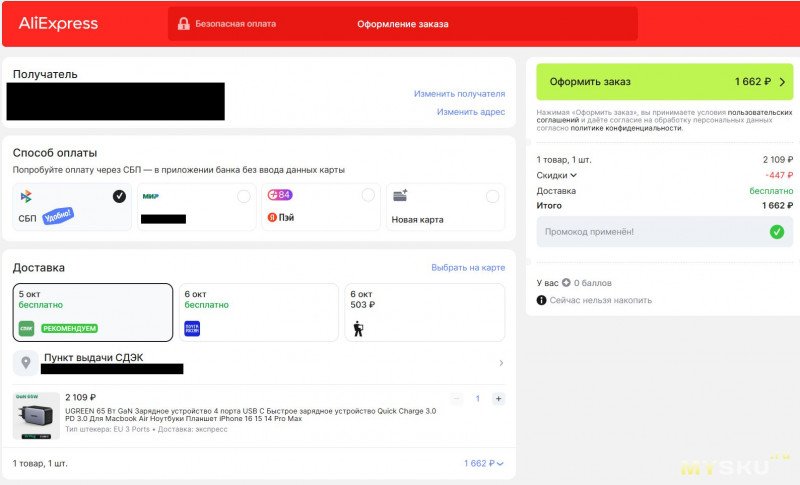 GaN Зарядное устройство UGREEN 65 Вт (Из РФ, от 1 662 ₽)
