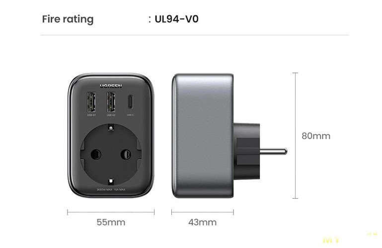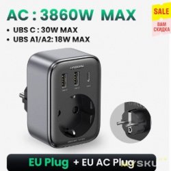 11.07$ Скидка на зарядное устройство с проходной розеткой UGREEN 30 Вт GaN PD
