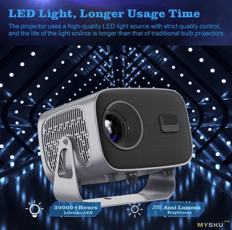 Доставка осуществляется со склада в России. Технические характеристики, как обычно, завышены, но за такую цену, как 1280х720Р проектор, он вполне подойдёт для просмотра мультфильмов на белой стене с экраном диагональю под 60 дюймов(от 1,52 м)