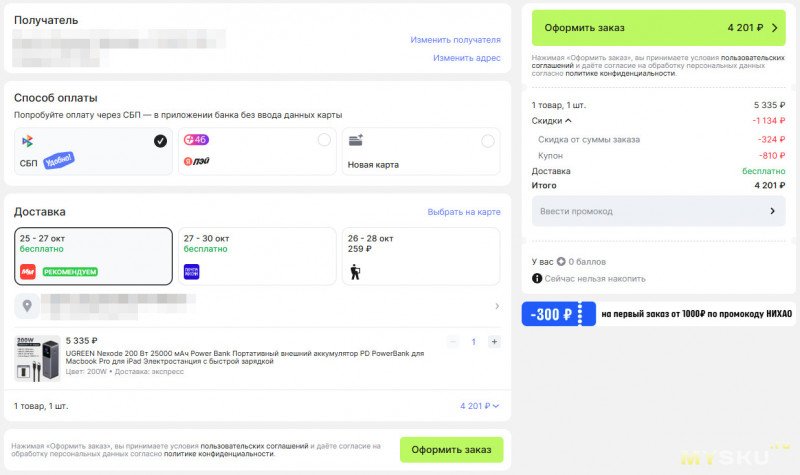 Для указанной цены берем промокод со страницы товара 486₽ от 488₽ и на этапе оформления заказа вставляем UG10M27. Получается 4201₽ с экспресс-доставкой.