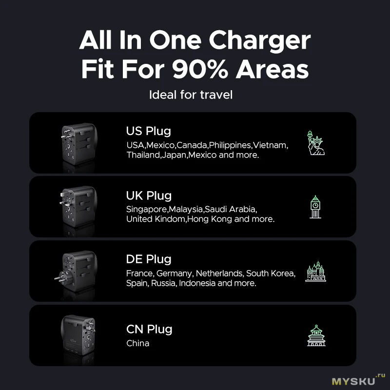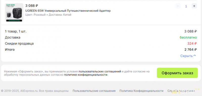 Скидка на зарядное устройство UGREEN 65W с вилками разных стандартов