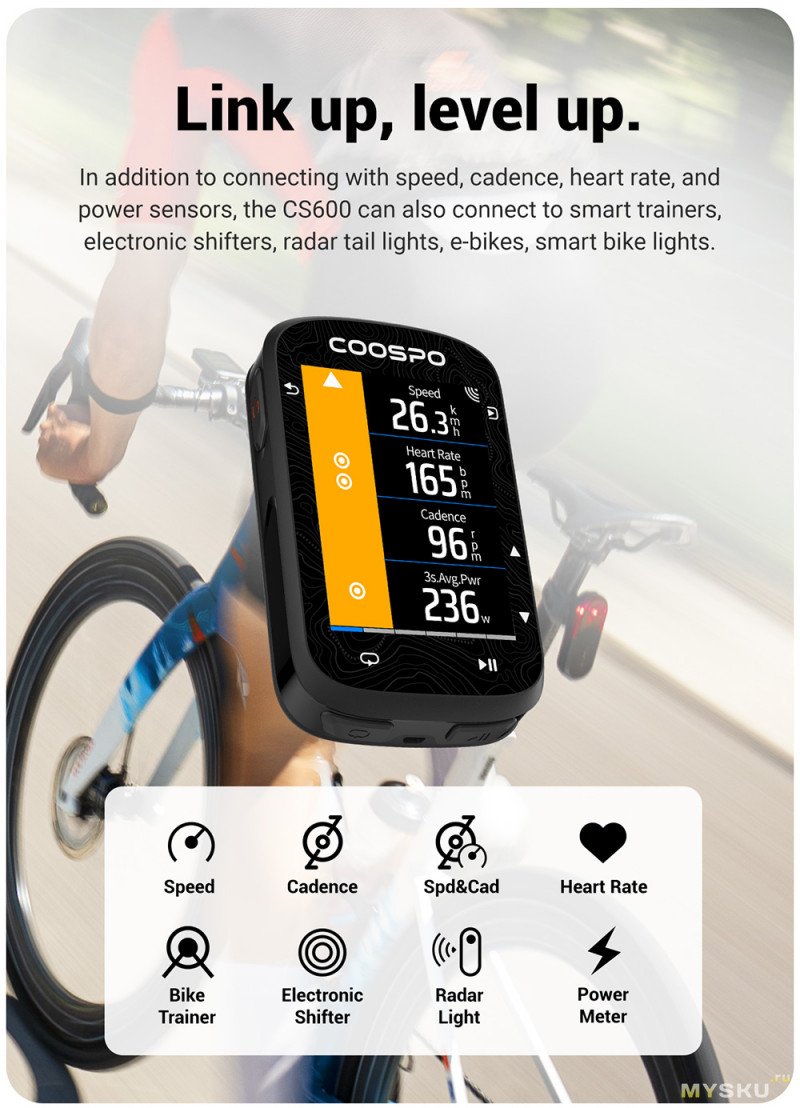 Скоро зима — повод обновить аксессуары для велосипеда. Вышла новинка у COOSPO — велокомп с сенсорным цветным экраном (+6 кнопок) и навигацией. Есть поддержка внешних устройств, включая задние радары. 36 часов запас автономной работы. Размеры 84 x 53 x 18 мм, масса 69 г. Защита от влаги IPx7. 8 ГБ памяти для треков.