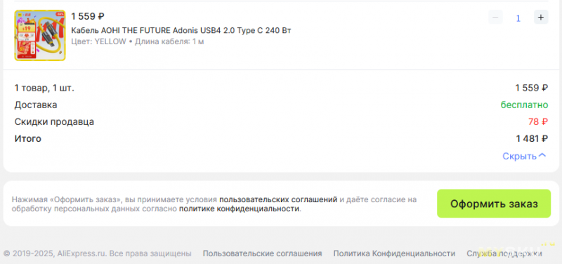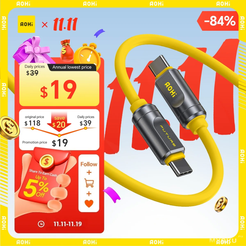Скидка на силиконовый USB-C to USB-C кабель 240 Вт и совместимостью с DP2.1