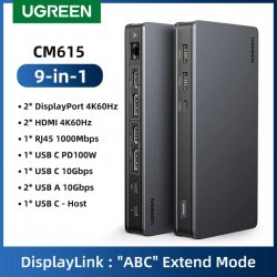 9-в-1: 2x HDMI 4K, 2x DisplayPort 4K, 1x PD 3.0 (100 Вт), 2x USB-A 3.2 (10 Гбит/с), 1x USB-C 3.2 (10 Гбит/с) и 1x гигабитным Ethernet-порт