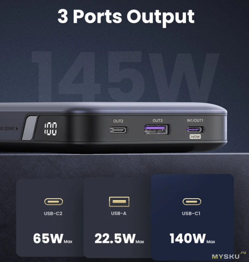 Повербанк UGREEN PB205 25000mAh 145W от 2721 ₽