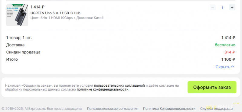 Скидка на мультифункциональный хаб UGREEN Uno 6-в-1.