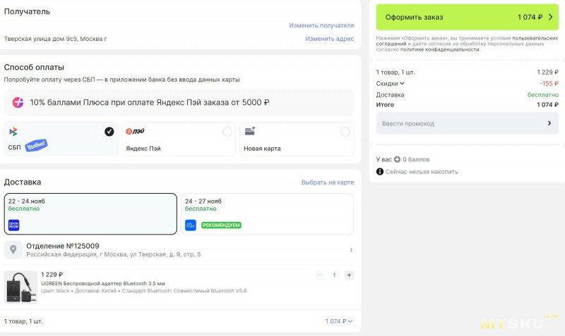 Беспроводной адаптер UGREEN Bluetooth - minijack 3.5 мм за 1074 руб.