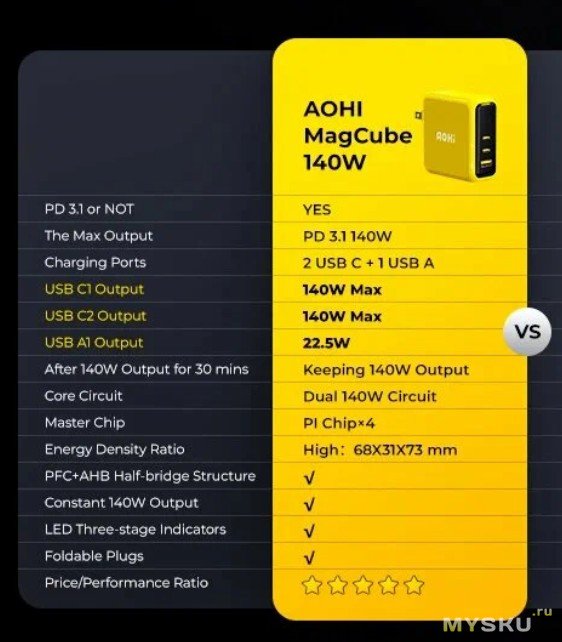 Зарядное устройство AOHI Magcube Pro 140W GaN Charger PD3.1 от 3099 ₽