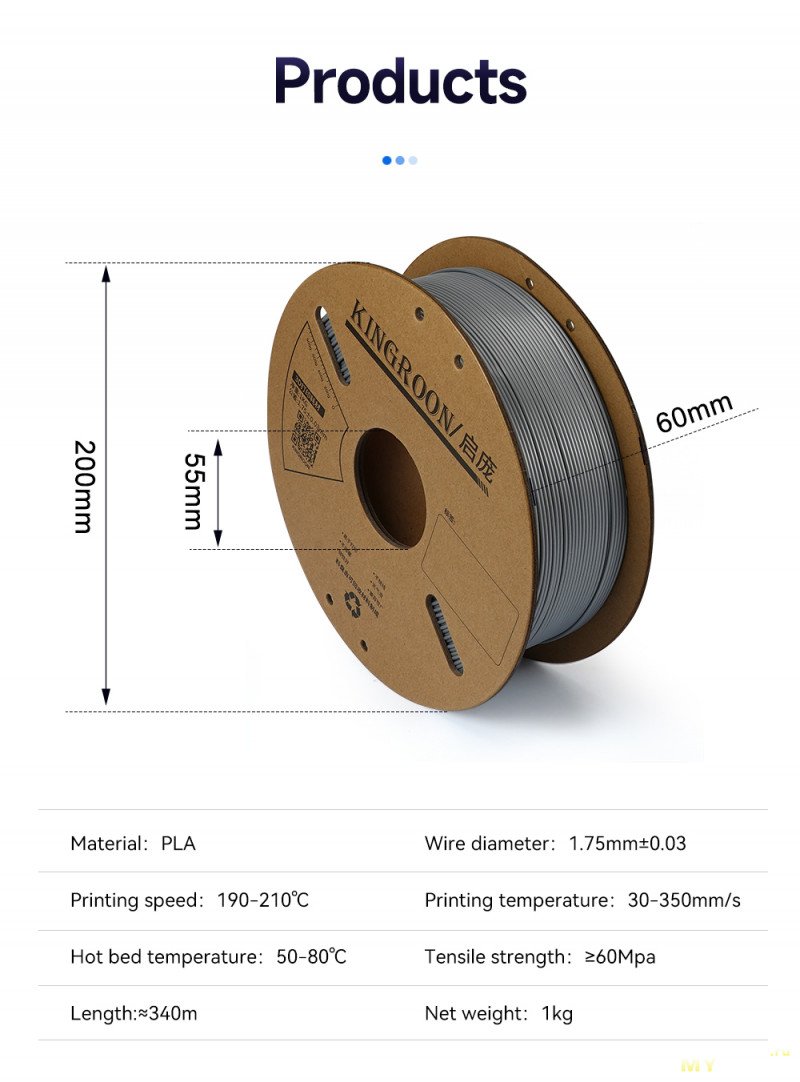 10 кг PLA Filament 1.75 мм от KINGROON (6 479 ₽)