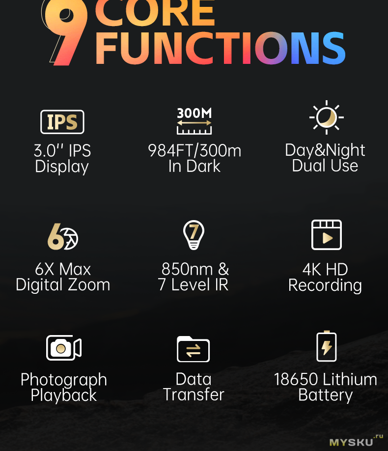 * Тип устройства — цифровой прибор ночного видения* Функции — запись видео, фотосъемка, воспроизведение