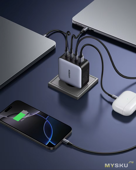 Мощное дорожное зарядное устройство UGREEN 200 Вт GaN позволяет одновременно заряжать несколько устройств — от ноутбуков MacBook Pro до смартфонов iPhone 16/15, Samsung S25 и планшетов Xiaomi. Поддержка PD 3.1, QC 4.0/3.0 и мощность до 200 Вт обеспечивают быструю и стабильную зарядку даже «тяжёлой» техники.