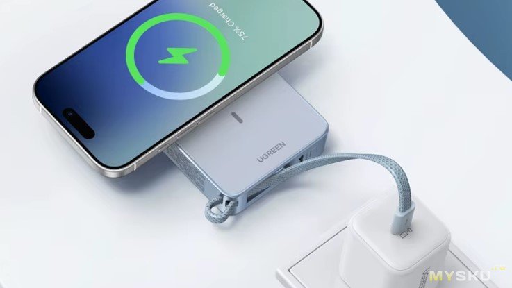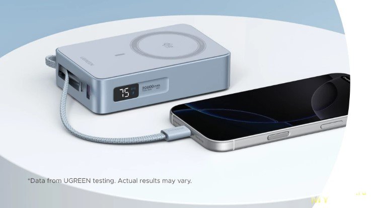 47.90$ (3656р) Скидка на UGREEN Qi2 25 Вт Магнитный внешний аккумулятор с быстрой зарядкой 20000 мАч