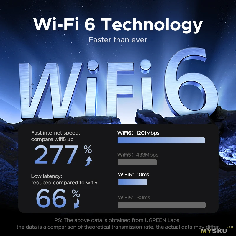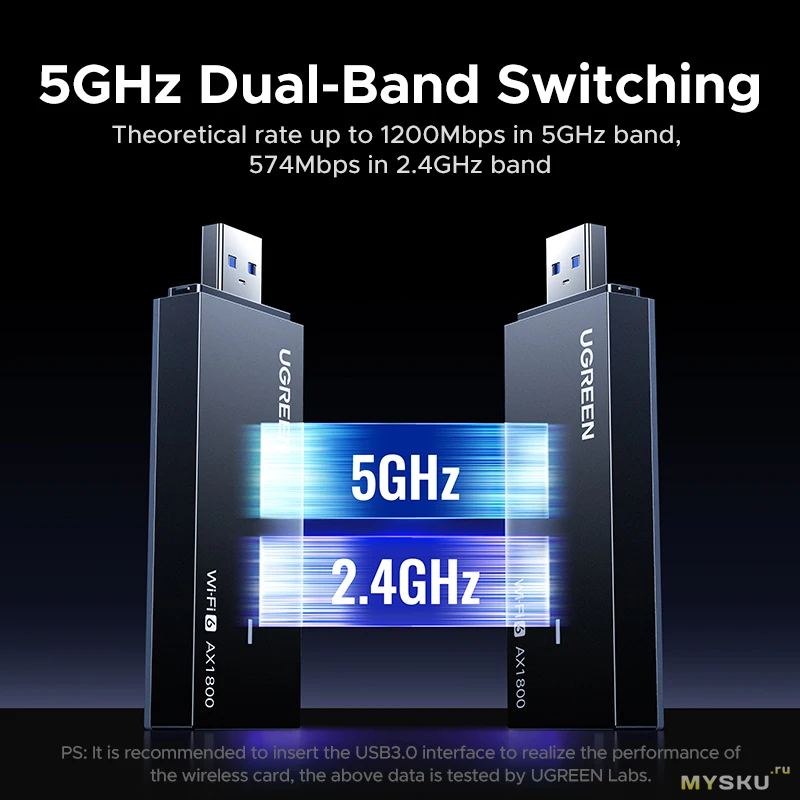 Простой и надежный беспроводный адаптер UGREEN AX1800 с подключением к ПК через USB3.0 и с поддержкой технологии Wi-Fi 6.