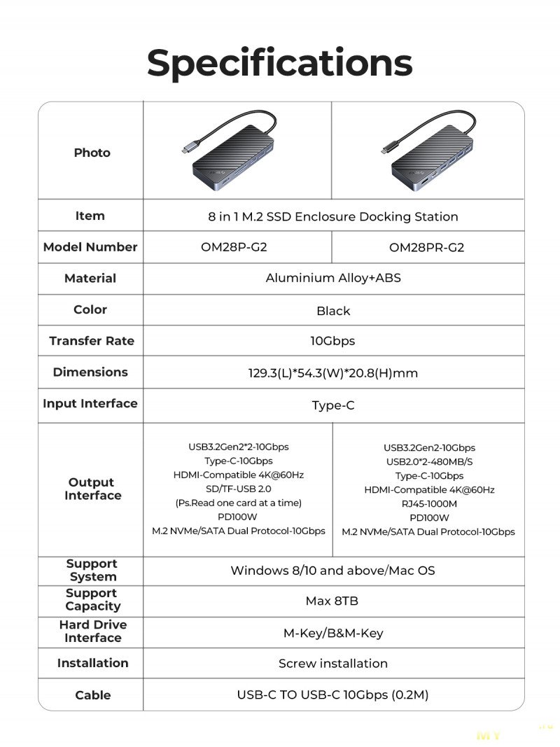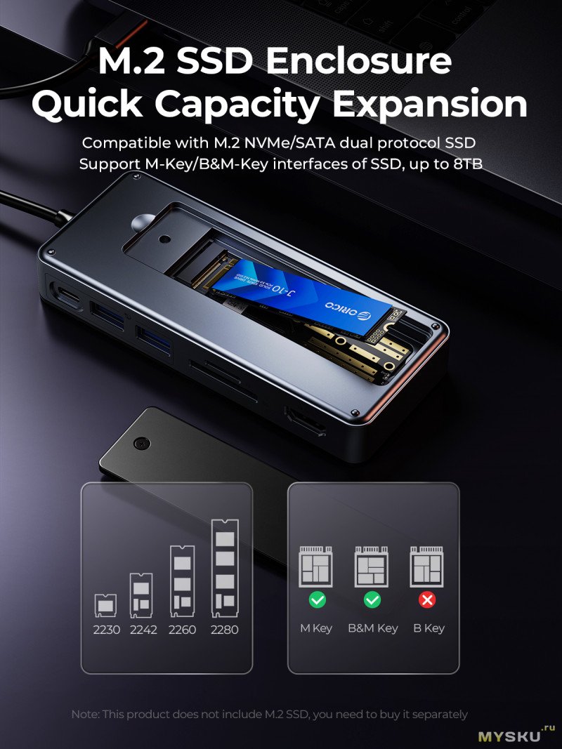 Хаб на 10 функций с активным охлаждением от ORICO (в лоте еще 8 функций). Есть возможность (помимо портов USB) установки SSD накопителя NVME/SATA, вывод видео HDMI, картридер, проводная сеть RJ45 и сквозная зарядка PD 100 Вт. Вариант для современного ноутбука, где есть недостаток портов.
