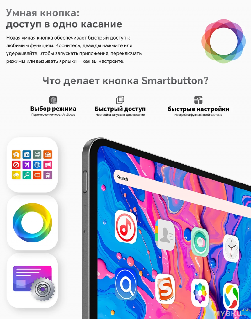 настраиваемая «умная кнопка» для быстрого доступа к функциям.