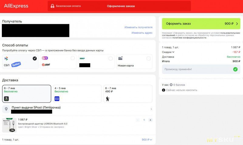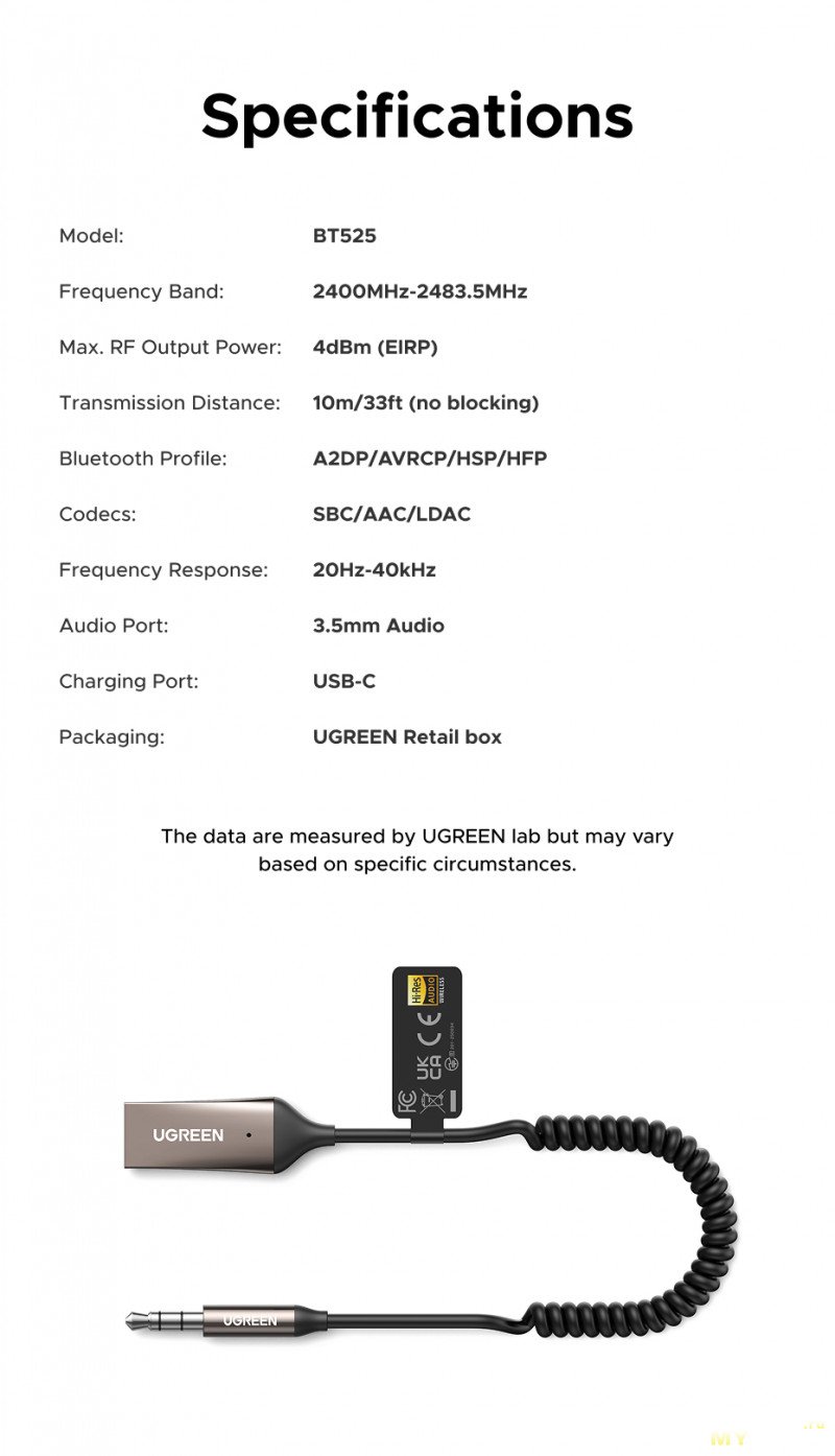 Беспроводной адаптер Bluetooth UGREEN (от 900 ₽)