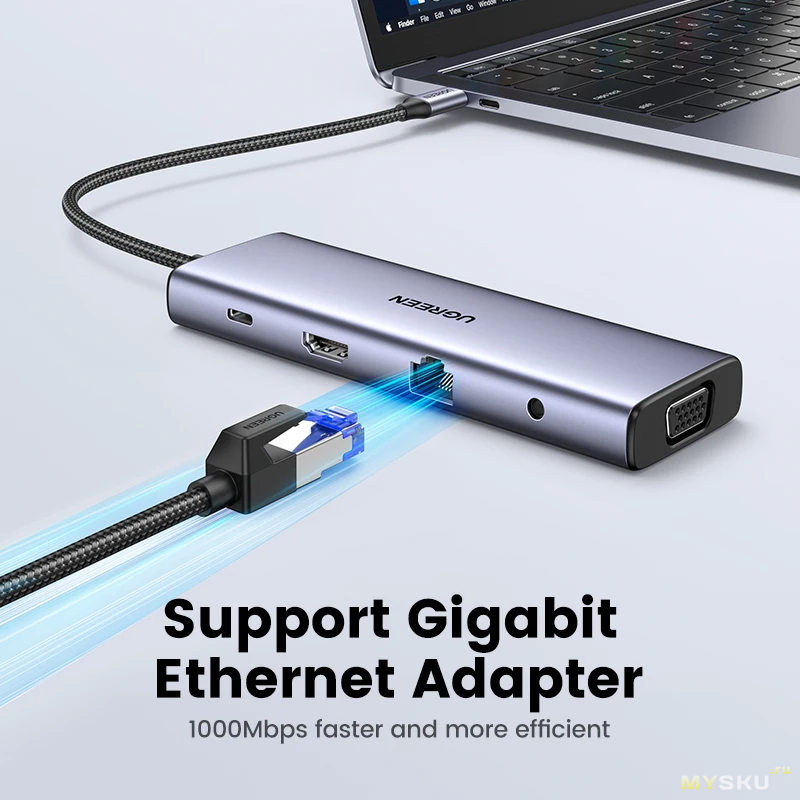 Скидка на UGREEN USB HUB Type-C to 4K HDMI+VGA+RJ45+PD100W для MacBook (за 1942 руб.)
