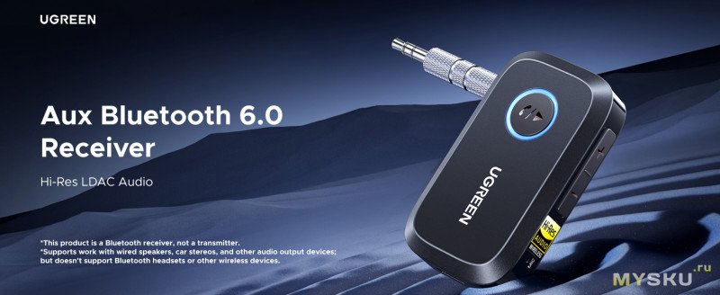 Качественный Bluetooth (кодек LDAC поддержка Hi-Res треков) в устаревшую аудиотехнику и автомобили от UGREEN. Компактный адаптер с интерфейсом подключения jack 3,5 мм. Поддержка звонков, 17 часов работы от встроенного аккумулятора. Есть мультипоинт. Кабели в комплекте.