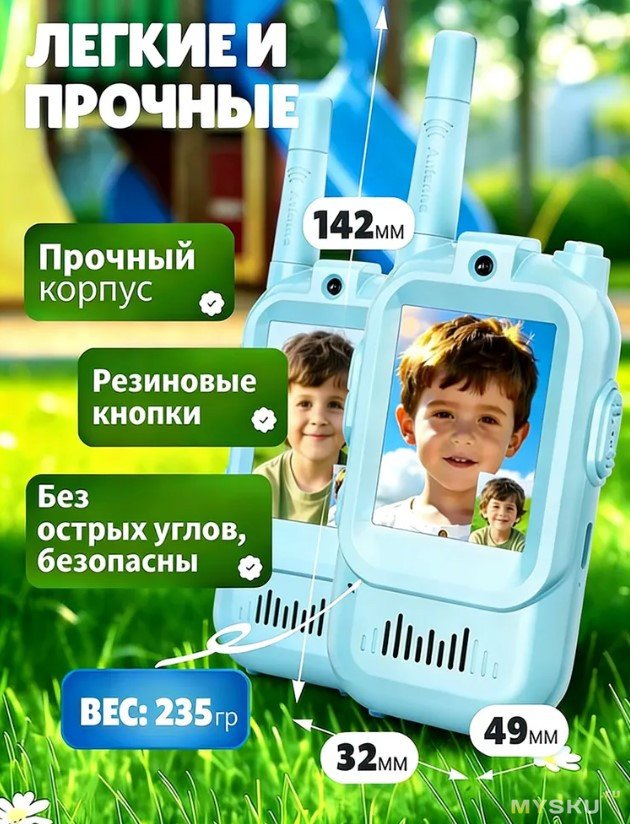 Современные детские видеорации с видеозвонком и голосовой связью. В отличие от обычных раций, позволяют видеть и слышать друг друга в реальном времени — без Wi-Fi и сложных настроек. Подходят для игр дома, на улице, прогулок и кемпинга.