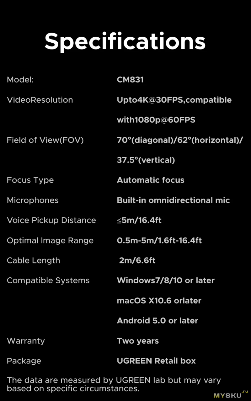 Веб-камера с двумя микрофонами UGREEN за 2068₽ вместо 2727₽