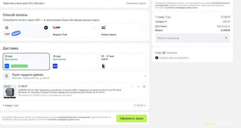 Зарядное устройство UGREEN GaN 100W за 2316 руб