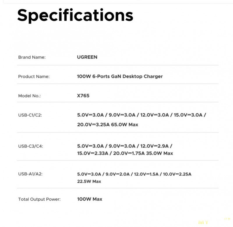 Настольное зарядное устройство UGREEN 100W- 6 ports GaN за 2 143 ₽