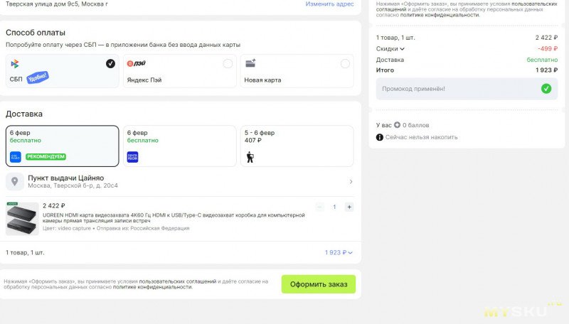 Карта видеозахвата UGREEN HDMI за 1923 ₽