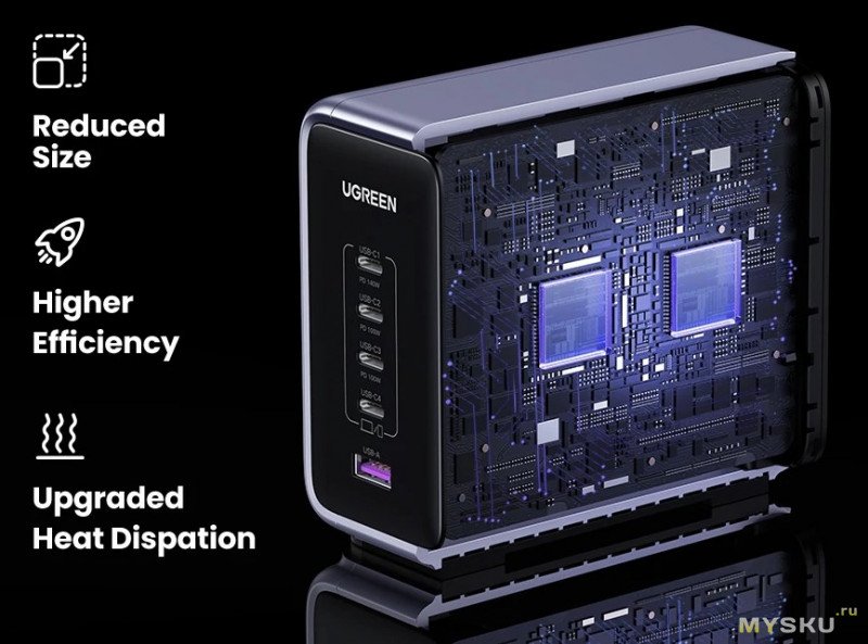 технология GaN для эффективной подачи питания, снижения тепловыделения и уменьшения размеров.