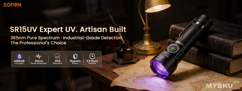 Очень мощный УФ-фонарь Sofirn SR15 UV (3 078 ₽)