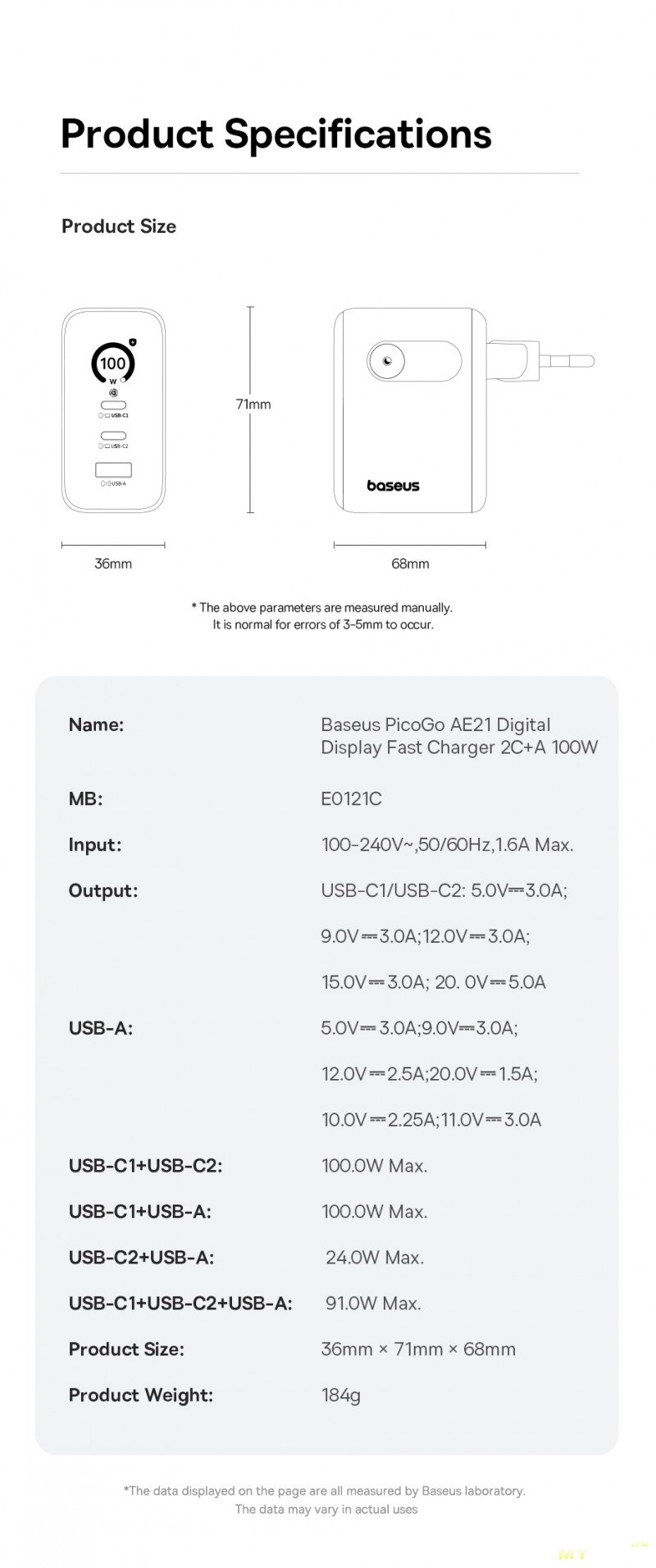 Сетевое зарядное Baseus 100 Вт GaN, дисплей (3 205 ₽)