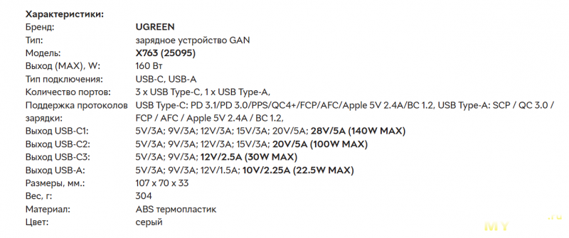 Быстрая зарядка UGREEN 160W GaN PD3.1 по акции (с купоном 3987 руб.)
