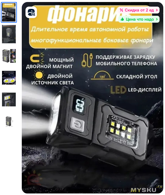 Удобный фонарик для повседневного использования, три вида света (ближний, дальний, красный), два магнита и прищепка, питание от 14500/АА/Ni-MH. Теперь в новом цвете корпуса, светодиоды и управление такое же.