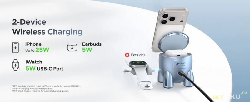 Внимание. В комплекте только подставка/беспроводная зарядка. Т.е. источник питания нужно покупать отдельно или использовать свою зарядку (от другого гаджета). Рекомендуется около 45Вт (но теоретически достаточно будет и 35Вт, нужно пробовать).