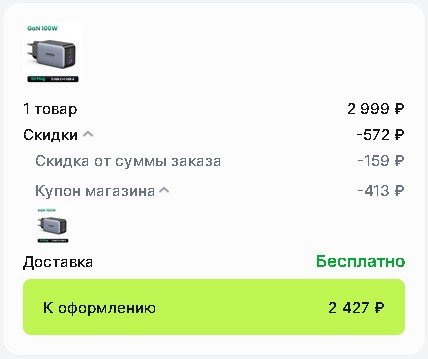 Код скидывает 4$. А также под ценой берём купоны. У меня в корзине срабатывает автоматический купон под ценой -5$, и доп.код на -2$, плюс код из топика (итого -11$).