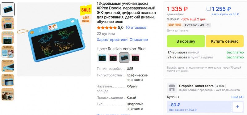 Обучающий планшет XPPen Doodle для рисования от 1 246 рублей