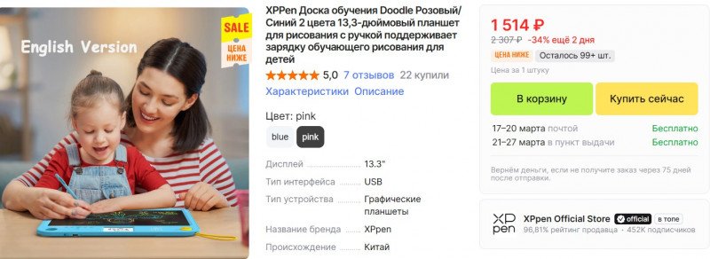 Ссылка на Обучающий планшет XPPen Doodle для рисования.
