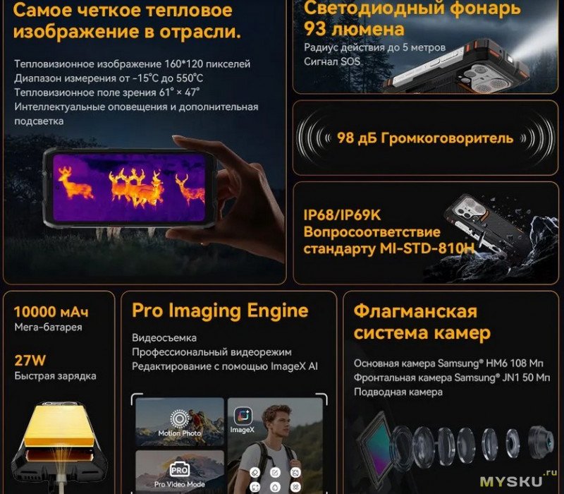 Большая скидка. Плюс дополнительно -4.4% по карте, но есть пошлина. Доставку обещают с 20 марта. Заявлен крутой тепловизор с разрешением 160х120 и точностью до 0.7 градуса. Blackview Смартфон 6.78" Oscal PILOT 6. Память 48 ГБ ОЗУ (12 ГБ ОЗУ+36 ГБ расширение) + 256ГБ. Система DokeOS 5.0 Android 16, Doke AI 2.0. Динамик 4.5Вт 98 дБ, аккумулятор 10000 мАч, процессор MediaTek Helio G100, NFC. Селфи камера 50МП. Фонарик 93 люмена. IP69К.