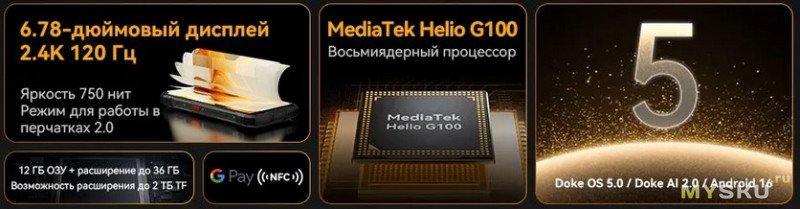 - Работает на Android 16, есть NFC, OTG и слот под карту до 1 ТБ.