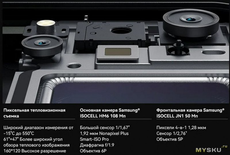 - Встроенный тепловизор и камера на 108 Мп (селфи — 50 Мп!).